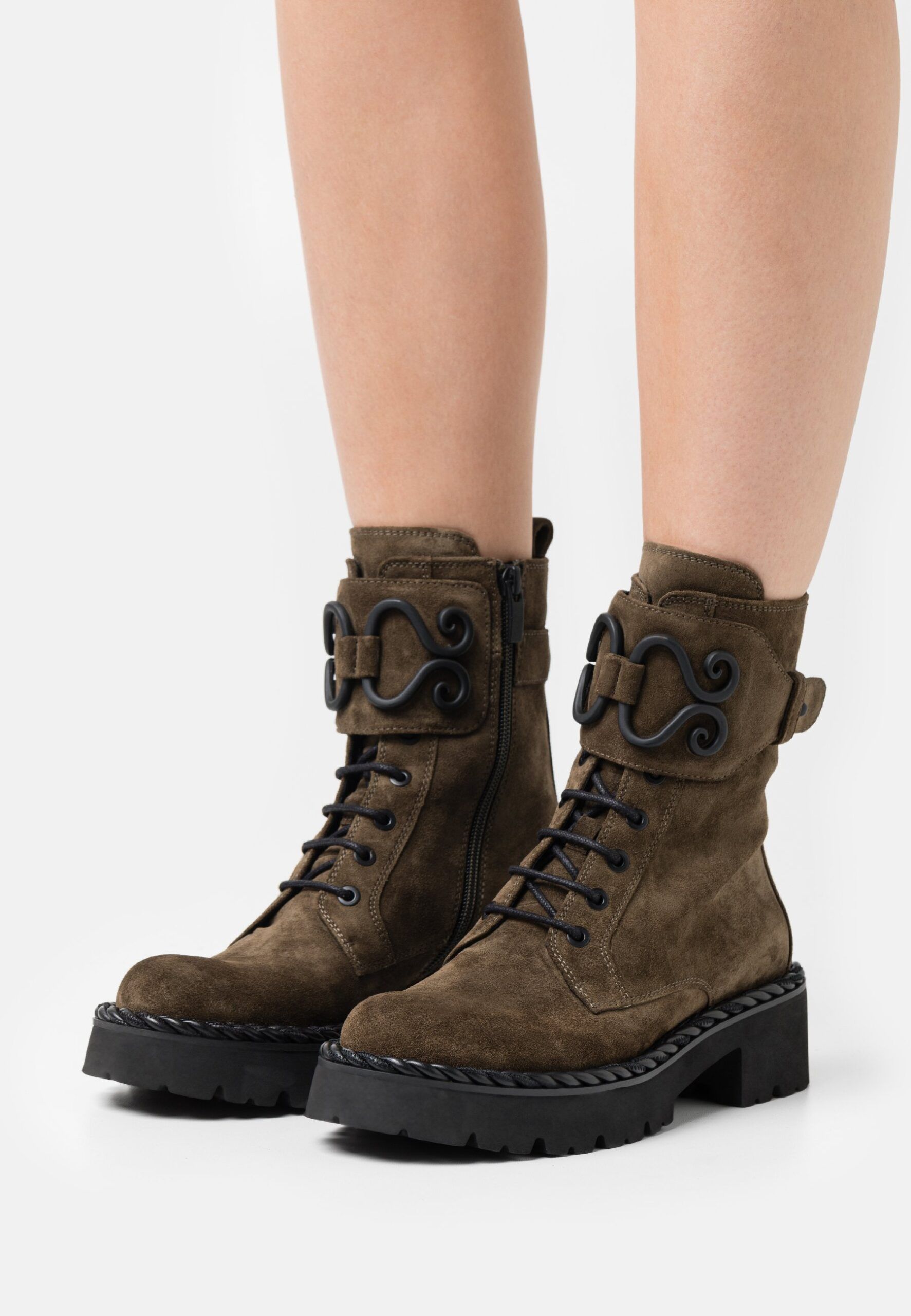 Material & Pflegehinweise Obermaterial: Veloursleder Innenmaterial: Leder Decksohle: Leder Sohle: Kunststoff Fütterungsdicke: Kalt gefüttert Pflegehinweise: Bitte vor dem ersten Tragen imprägnieren Mehr zu diesem Produkt Innenmaterial und Decksohle aus Schafsleder, Obermaterial aus Ziegenleder, Schnürung zur Weitenregulierung Schuhspitze: Rund Absatzform: Blockabsatz, Plateau unter dem Vorderfuß Verschluss: Reißverschluss Muster: Unifarben Details: Schnalle Passform Schafthöhe: 16 cm bei Größe 37 Schafthöhe: Knöchelhoch Absatzhöhe: 5 cm bei Größe 37 Absatzhöhe: Mittel Plateauhöhe: 3 cm bei Größe 37