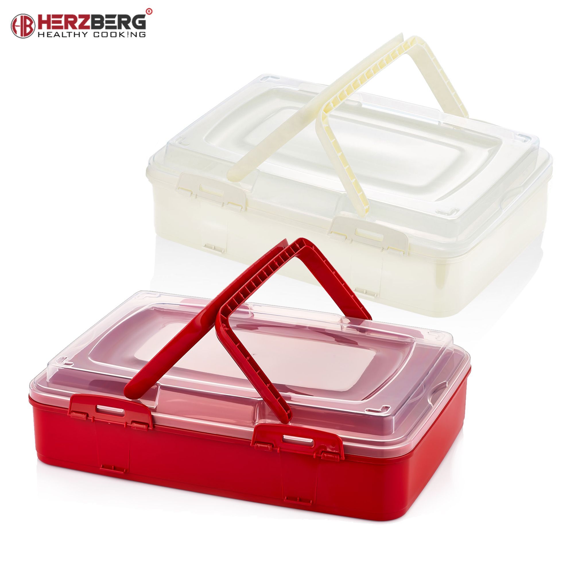 Herzberg Aufbewahrungsbehälter für Torten, Sicherheitsverschluss BPA-frei, Rot
