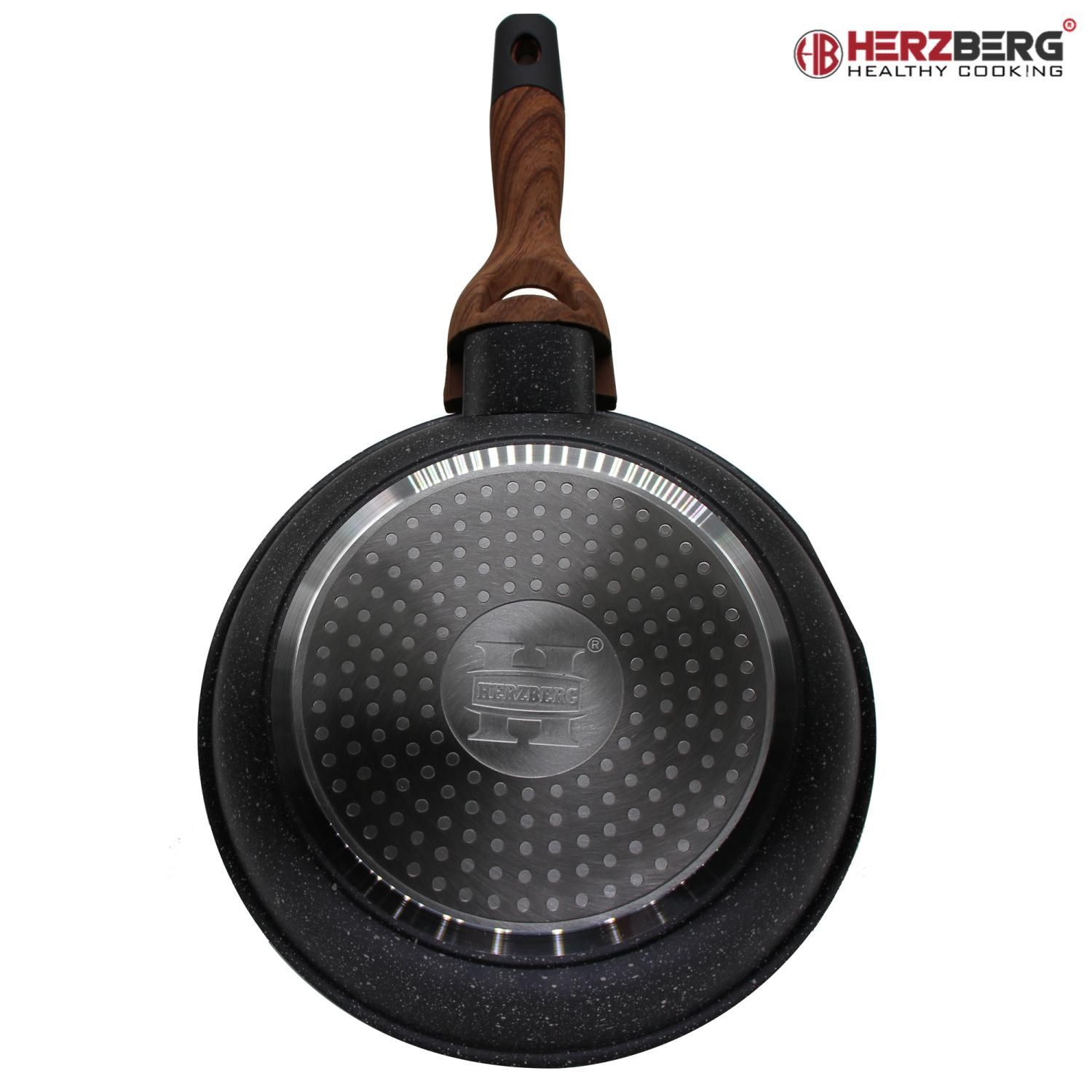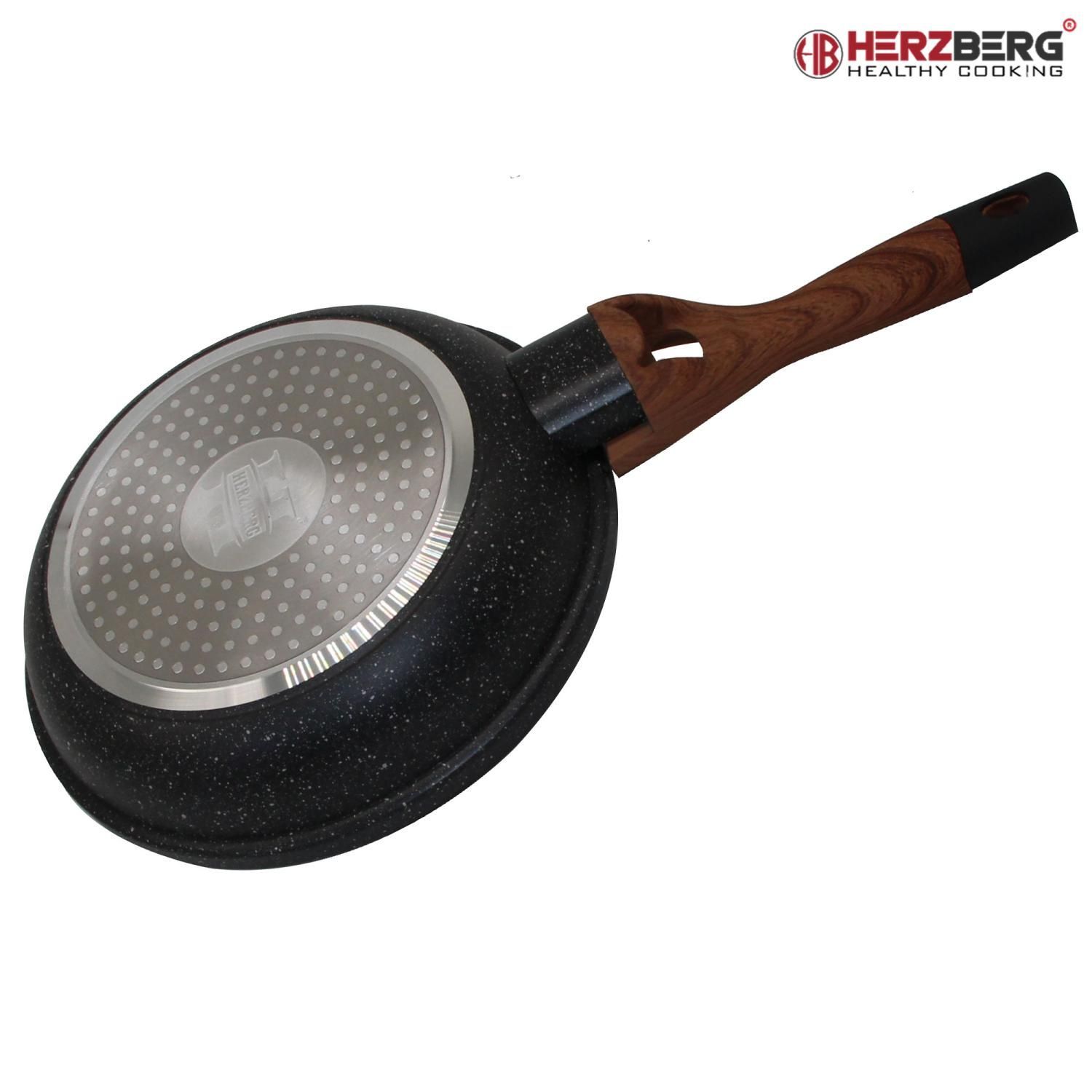 Herzberg Marmorbeschichtete Bratpfanne 20cm mit weichem Griff in Holzoptik