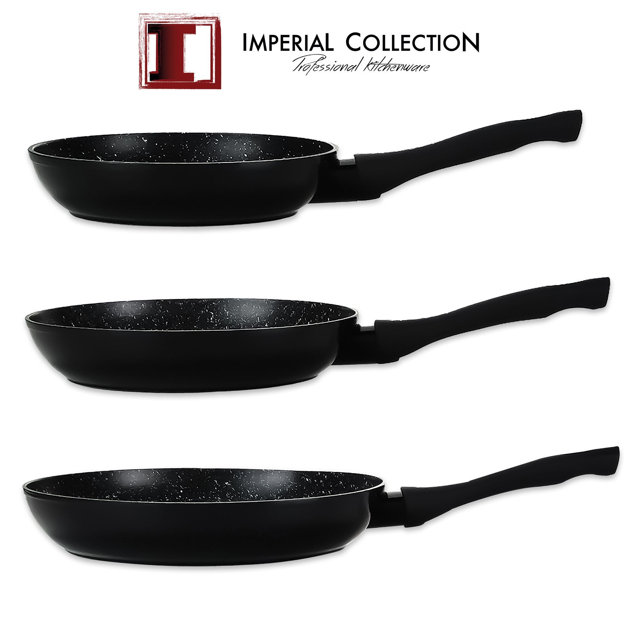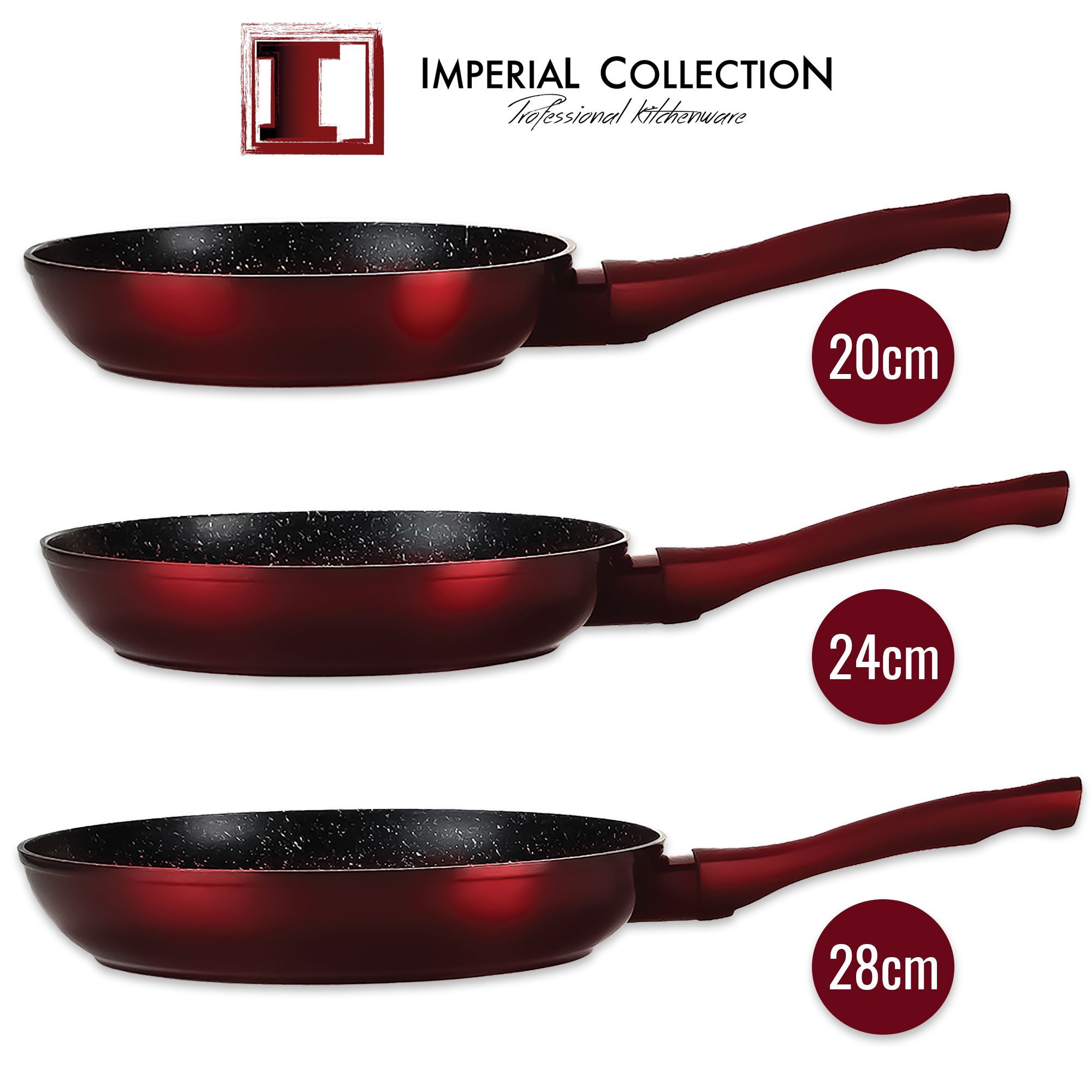 Imperial Collection IM-FFMT: 3-teiliges, mit Marmor beschichtetes Metallpfannen-Set (20 cm, 24 cm, 28 cm) Premium Grade Metallic Farbige Pfannen 3 Größen, 3 Farbvarianten Hochwertiger Marmor beschichtet Selbst-Wärmeverteilung Maximale Wärmeschutz Turbo Induction Bottom Sparen Sie 35% Energie antihaftbeschichtetem Soft-Touch – Griff auch für Induktion geeignet, Gas, Halogen. Elektrische Kochfelder Ofensicher Spülmaschinenfest