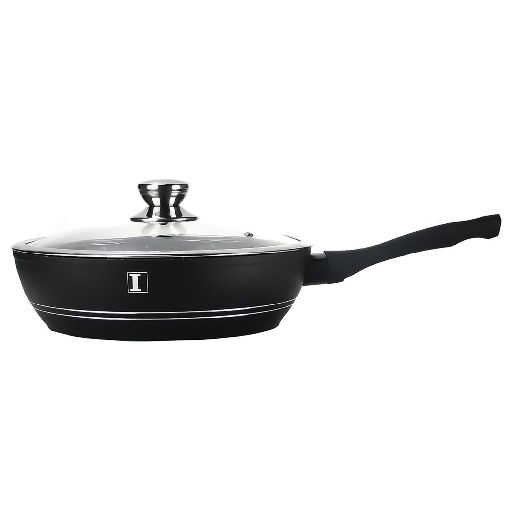 Imperial Collection IM-DFL32-FM: 32 cm marmorbeschichtete Frittierpfanne mit Deckel Antihaftbeschichtung aus schwarzem Stein Hochwertige Antihaftbeschichtung aus Marmor Deckel aus gehärtetem Glas mit S / S-Knopf Soft Touch Griff Griff Sparen Sie 35% Energie Gleichmäßige Wärmeverteilung Hervorragende Wärmespeicherung Turbo Induktionsboden Geeignet für Induktions-, Gas-, Keramik-, Elektro- und Strahlungsring-Kochfelder PFOA / LEAD-frei Cadmiumfrei Deutsche Qualitas Kontrolle L.F.G.B Standard 32cm
